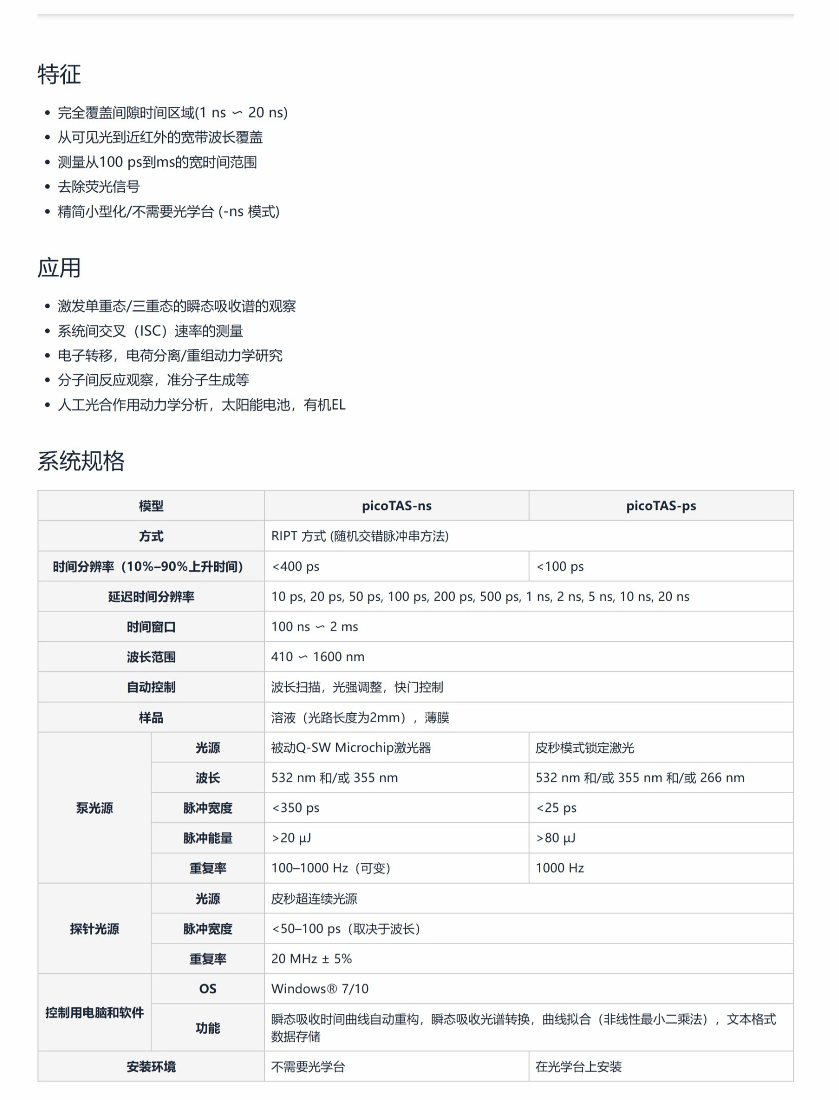 皮秒/纳秒瞬态吸收光谱系统 picoTAS